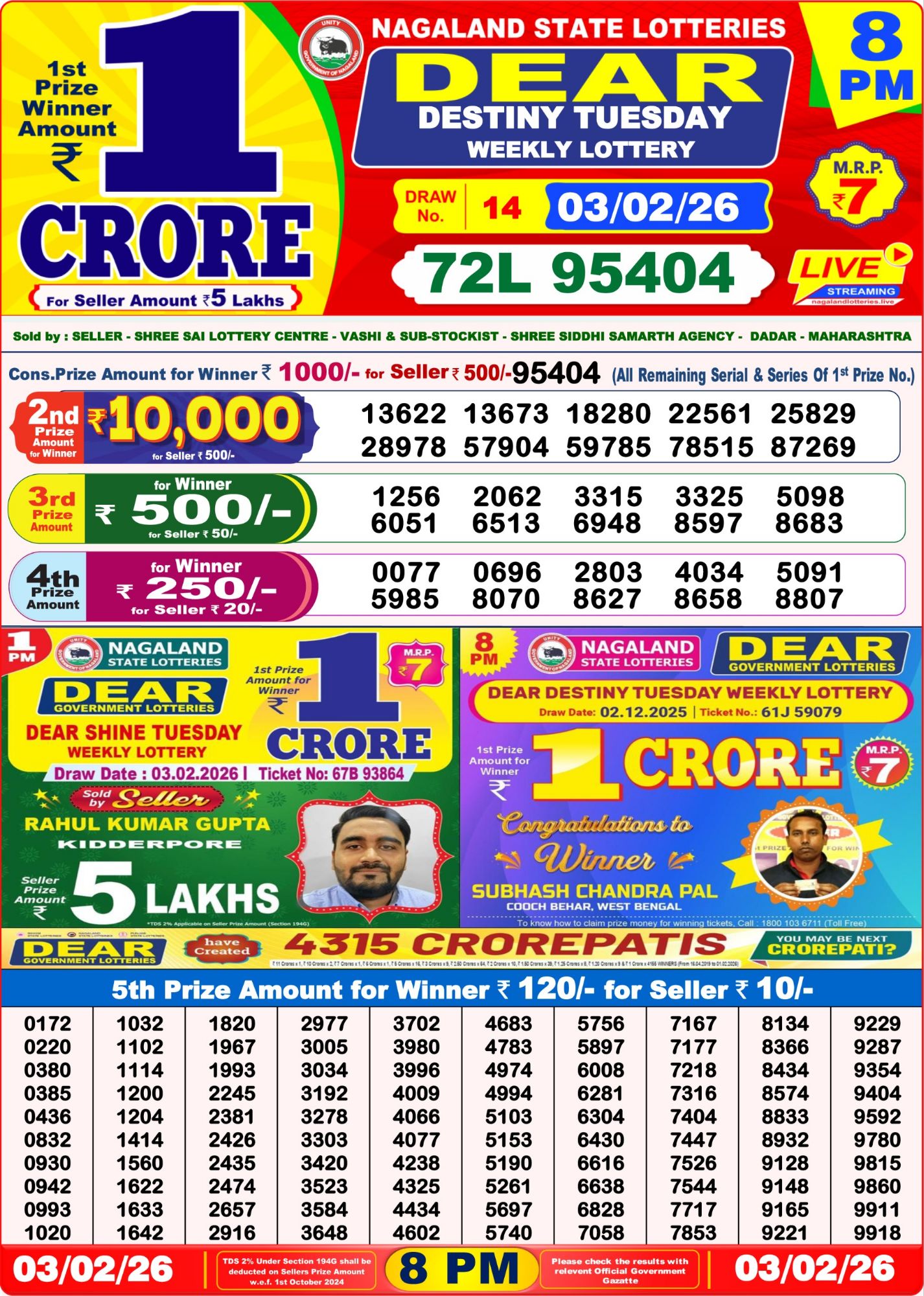 8PM Scheme is Dear Destiny Tuesday Weekly Lottery Result 03/02/26 8:00 PM